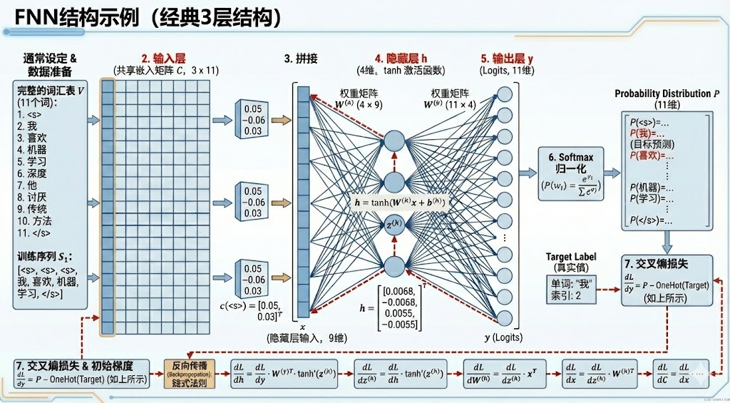 | 词汇表大小 | V=11 | 包含特殊符号和标点在内的总词数 |